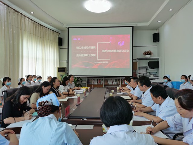 座谈会上,刘涛首先就该院基本情况及其“三院(铜仁市妇幼保健院、妇产医院、儿童医院)三家(儿童之家、妇产之家、老年之家)”建设规划进行介绍说明,并表达了与我院建成非直属附属医院合作关系的愿望。我院护理系主任刘艳介绍了学院基本情况、专业设置和发展定位,着重介绍护理系“一老一小”的发展方向。随后,双方还就助产专业人才培养、课程设置、实训基地建设、职业技能培训、实习生管理、教师互兼互聘等方面进行了深入细致的沟通交流。