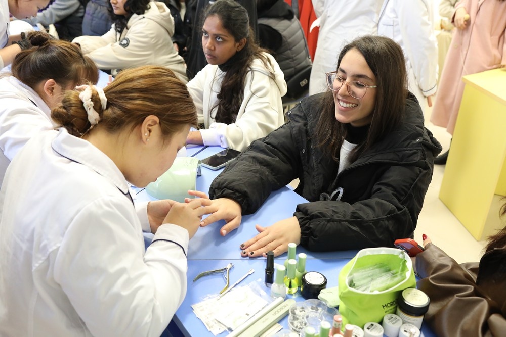 在活动中,留学生在贝博官网体育馆和四系实训室体验了八部金刚功、心肺复苏、新生儿抚触、艾灸、推拿、皮肤检测、化妆、中药调剂抓取演示、中药香囊制作等活动。