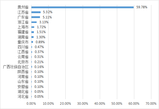在所有签订三方协议与就业合同书的毕业生中,选择留在贵州省内就业的毕业生比例为59.78%,到广东省、江苏省、浙江省等发达地区就业的约占13.56%。