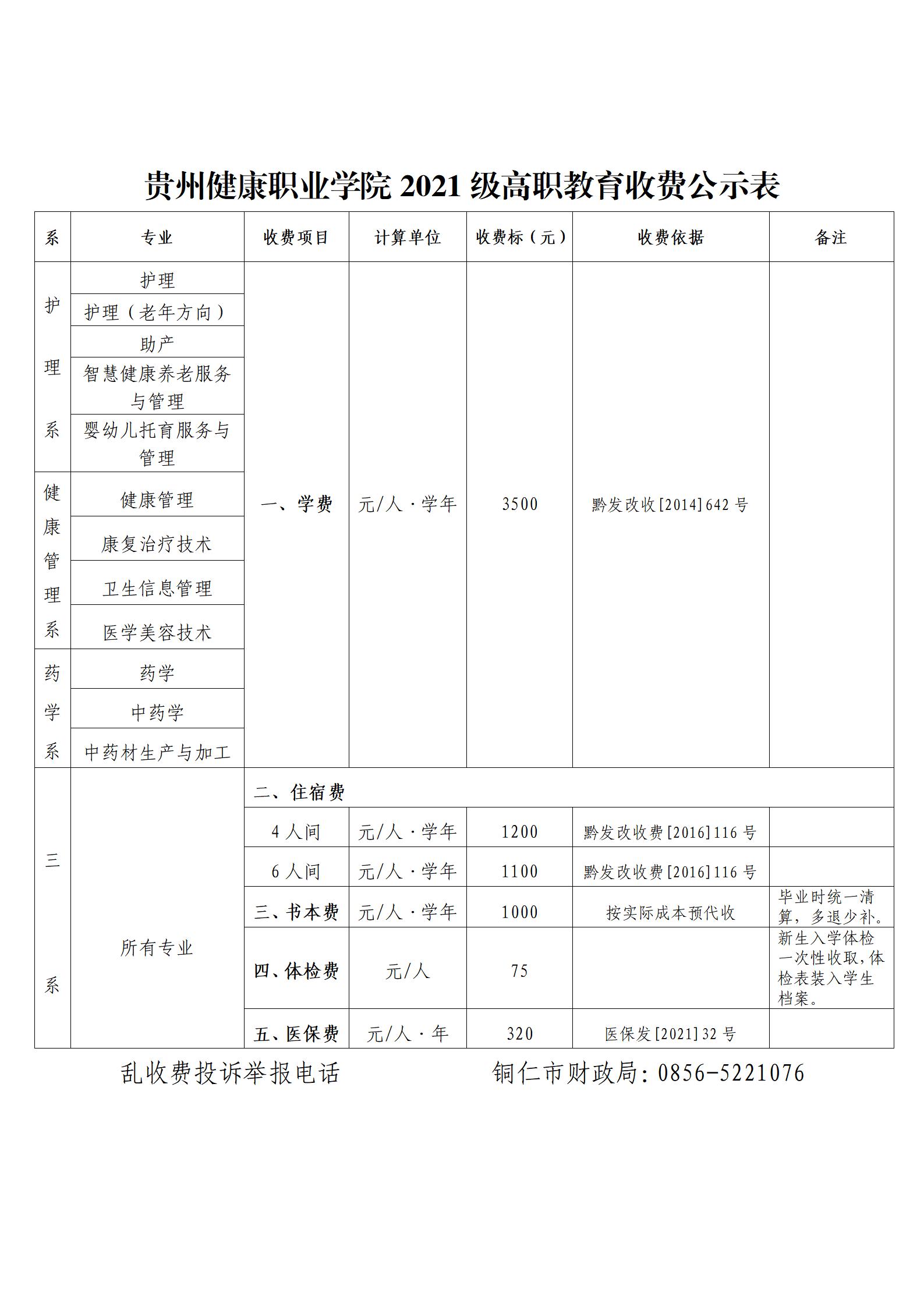 BB贝博艾弗森官方网站2021级高职教育收费公示表