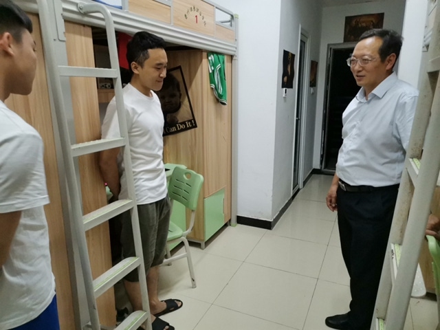 在学生宿舍,李黔军与同学们亲切交谈,详细询问了同学们的生活情况,了解他们接下来即将开始的实习生活和未来打算,鼓励同学们充分利用实习前的这个时间段,多读书、多思考,为今后的人生之路奠定坚实的基础。目前是铜仁的汛期,又多雷暴天,李黔军叮嘱同学们外出时要注意安全,每天把自己的生活轨迹及时汇报给辅导员,同时嘱咐同学们正确对待疫情,要按照学院的统一部署,在疫情防控期间,注意开窗通风,保持身体健康,不放松、不泄劲,克服困难,坚定信心,有任何困难随时联系老师。