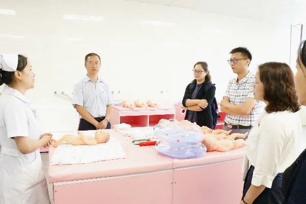 随后,李方和杨洁一行实地考察我院培训教学与管理工作流程及配套设施,对医疗护理员项目工作站的办公条件、培训场地和实训室等相关进行详细了解,并给予高度肯定。