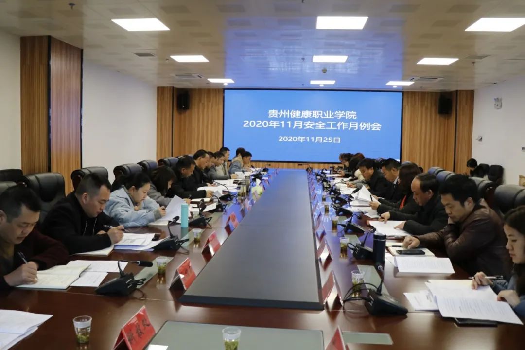 11月25日,学院召开11月安全工作月例会,副院长龙宪碧出席会议并讲话,各部门、各系负责人,三系学生科负责人,物业公司保安队长、宿管队长参加会议。