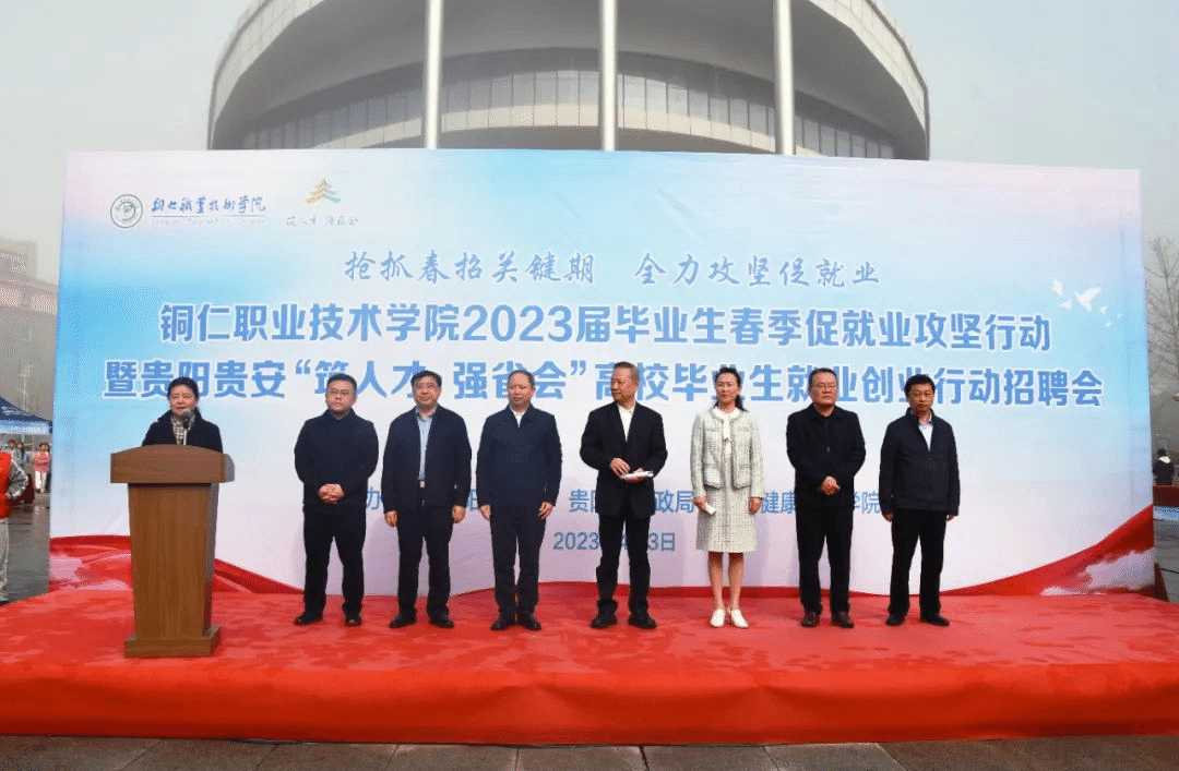 4月3日上午,我院与贵阳市委人才工作领导小组、铜仁职业技术学院联合举办的2023届毕业生春季促就业攻坚行动暨贵阳贵安“筑人才·强省会”高校毕业生就业创业行动招聘会在铜仁职院北门广场举行。