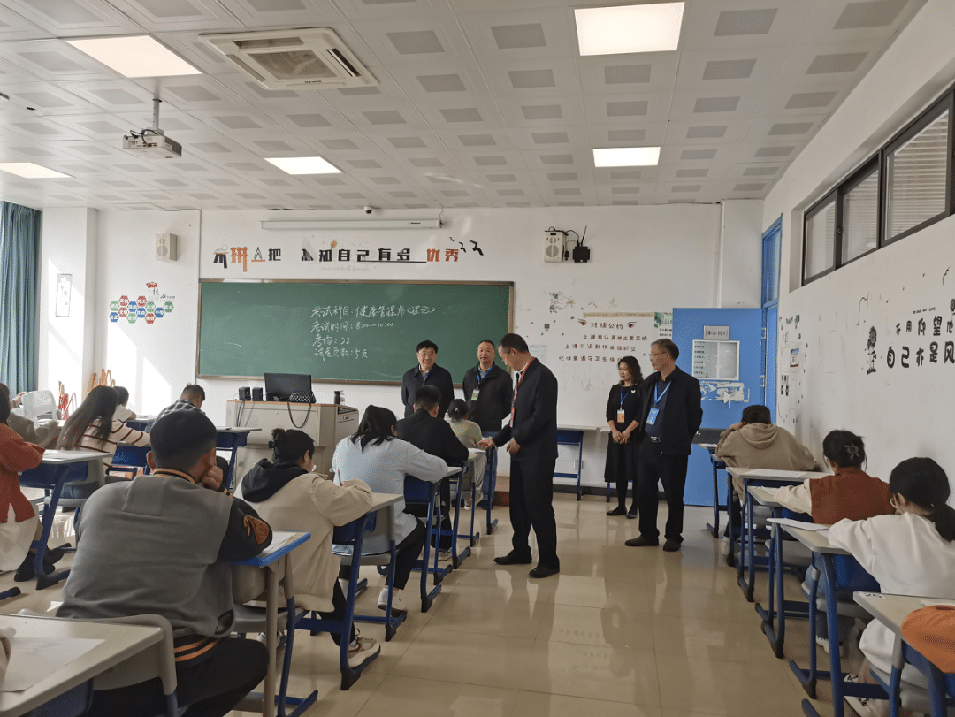党委副书记、院长吴国才带队,党委委员、副院长唐康,党委委员、副院长黄国刚,党委委员、工会主席王锡林陪同,到考试现场指导检查,就考试过程进行了监督指导,对考试组织的有序性进行了充分肯定。继续教育部、教务处、护理系负责人参加质量督导。