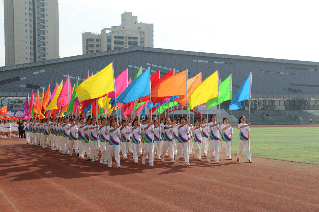 开幕式现场伴随着激情澎湃的《运动员进行曲》,国旗队、校旗队、彩旗队、表演队、各系运动员代表队依次入场。他们面带微笑,意气风发,昂首阔步依次通过主席台,展现了青年学生特有的朝气与活力。