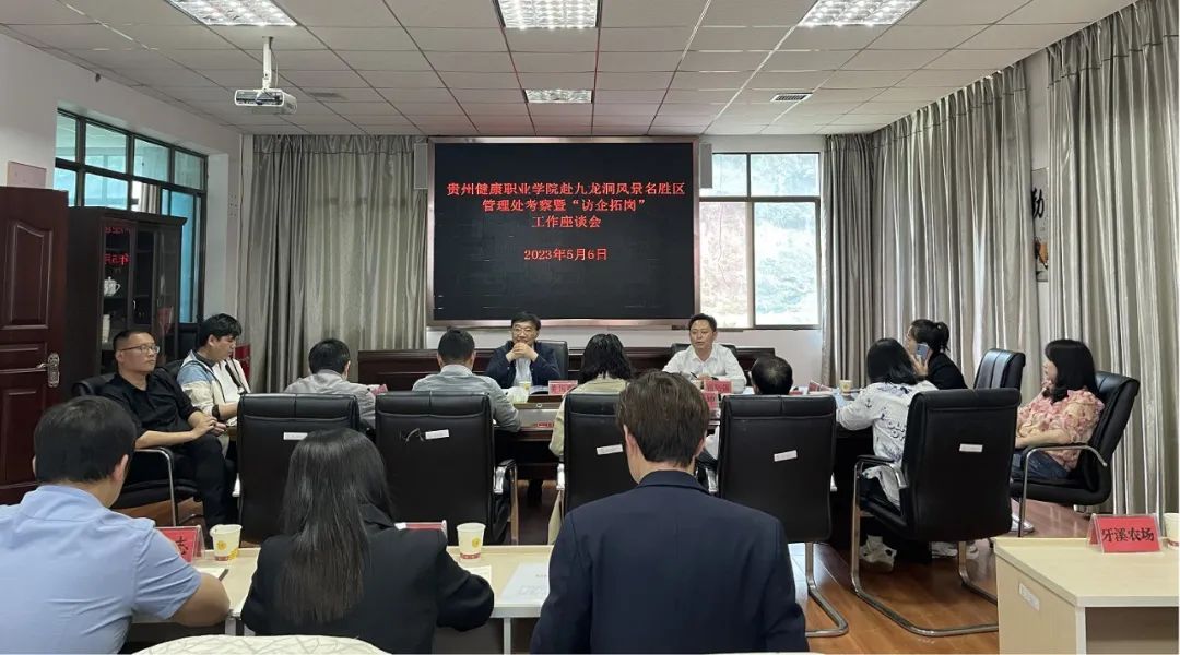 座谈会上,九龙洞风景名胜管理处对我院一行的到来表示热烈欢迎,相关企业介绍了企业经营情况并表达了校企合作意向。黄国刚介绍了我院办学基本情况,双方围绕加强政校企合作、优化人才培养机制、拓展毕业生就业渠道、助力地方产业发展等方面开展深入交流。