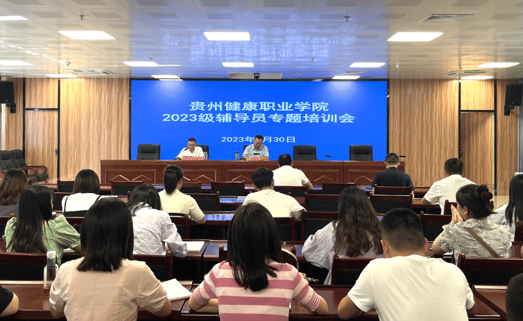 8月30日,党委学工部在行政楼一楼视频会议室召开2023级新生班辅导员专题培训会,会议由党委学工部部长冉勇军主持,学院党委副书记李黔军出席会议并讲话。