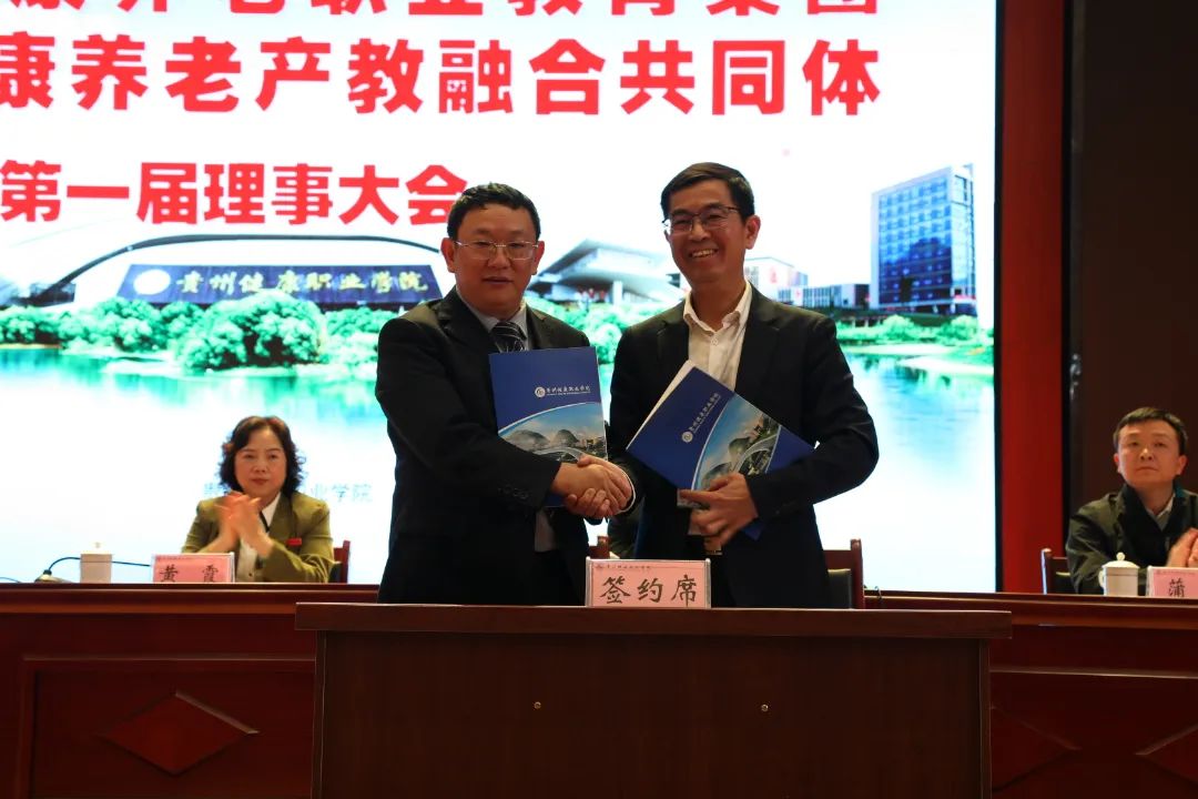 会议表决通过了理事会机构及成员名单,推选了理事长、常务副理事长、秘书长,审议通过了《铜仁市健康养老职教集团(铜仁市健康养老产教融合共同体)章程》。学院与天津天堰科技股份有限公司、铜仁市幸福里养老服务有限公司签订了铜仁市健康养老产教融合共同体校企合作协议。