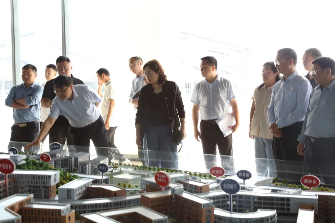 黄霞一行先后来到思政基地、大健康虚拟仿真实训中心、老年照护中心、智慧健康养老中心、中医药虚拟仿真实训基地、护理系理实一体化实训室、助产理实虚一体化实训室、大学生活动中心、学生一站式服务中心等地,仔细询问了各实训室和实训基地建设、大学生一站式服务中心使用中存在的问题,并作出指导。