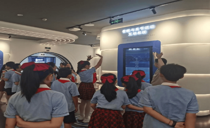 在大健康虚拟仿真实训基地,我院教师向铜仁市实验小学师生介绍了各类虚拟仿真技术,包括孕育初生与生命起源、骨与关节互动运动系统、中医体质辨识、沉浸式虚拟体验急救场景等内容,同学们感受到了科技在医学领域的广泛应用和深远影响。