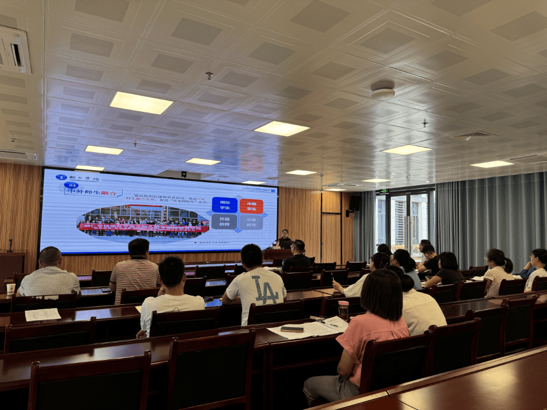 6月25日,我院举办国际化办学专题讲座,铜仁学院国际处处长刘姗应邀担任主讲。院党委委员、副院长晏龙强主持讲座,党委宣传统战部、党委学工部、教务处、后勤处、保卫处、人文基础部(国际学生教学管理中心)、对外合作与发展部、四系负责人及相关外事工作人员聆听讲座。