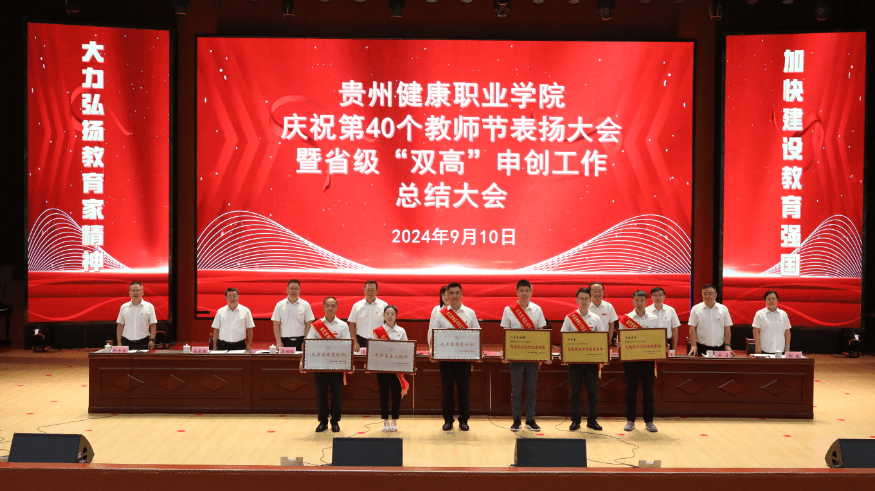 9月10日,我院召开庆祝第40个教师节表扬大会暨省级“双高”申创工作总结大会。学院党委书记黄霞出席大会并讲话,院党委副书记、院长吴国才主持会议,院领导班子成员及全体教职工、学生代表参加会议。