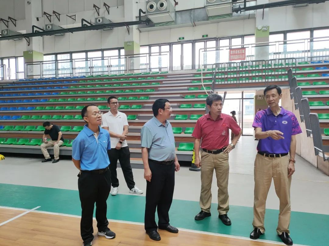 陈智勇一行在体育馆调研