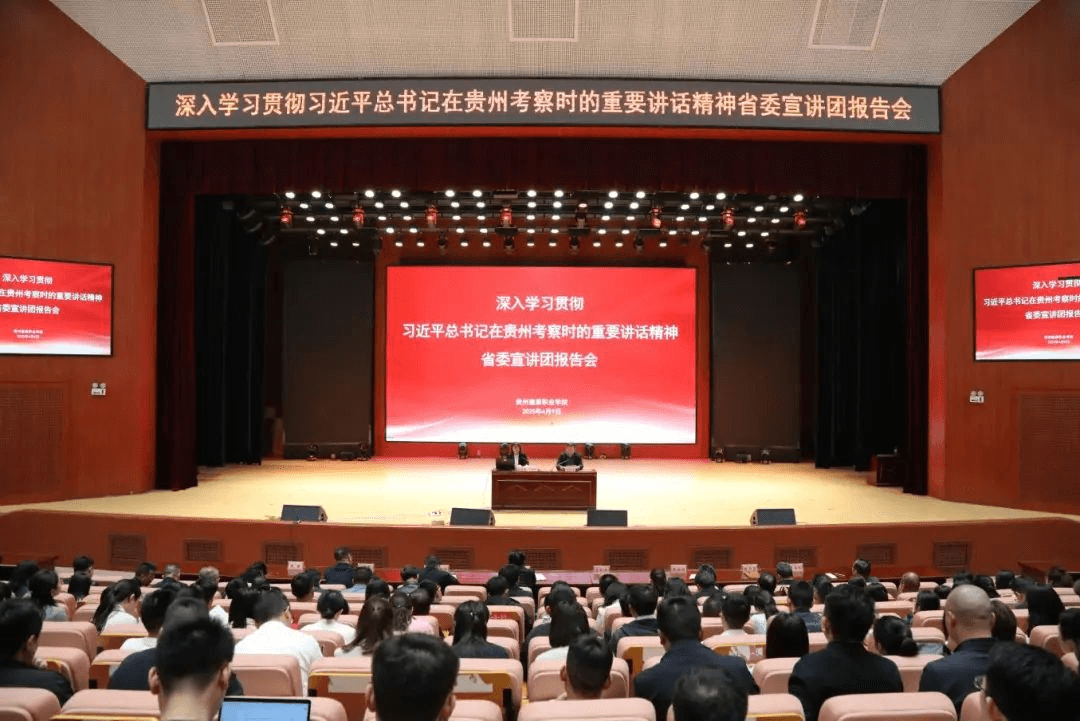 4月9日,深入学习贯彻习近平总书记在贵州考察时的重要讲话精神省委宣讲团报告会在BB贝博艾弗森官方网站大礼堂举行。省委宣讲团成员、省社会科学院社会研究所研究员杜双燕作宣讲报告。报告会由学校党委副书记李黔军主持,学校在家领导班子成员、全体教职工、各系学生代表参加报告会。