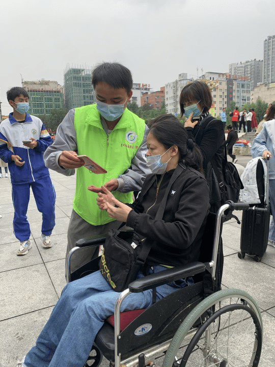 “这个怎么办?我不是智能手机,没有健康码,时间马上就要到了,火车票都卖光了,错过就回不了家了呀!”在人群中,志愿者发现了张爷爷焦急的面孔。“爷爷您别着急,请跟我到这边来,把身份证给我一下,我们为您登记就可以进去了,您啊跟我走绿色通道,一定来得及的。”就这样志愿者解决了张爷爷的困惑,帮助他及时踏上了回家的路程。