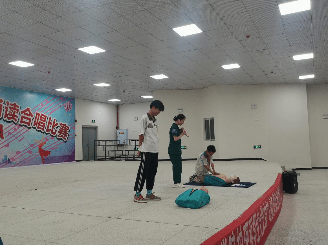 在实践操作环节,学生党员们积极参与,指导同学们进行心肺复苏术和海姆利克急救法演练,让同学们亲身体验,迅速了解和掌握如何确定现场环境、判断反应等急救措施。