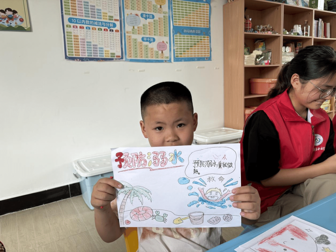 在村中“儿童之家”,队员们结合专业特长,通过绘画、讲故事、舞蹈等生动活泼的形式,向孩子们传授防溺水、防触电等安全知识,同时巧妙融入爱国主义教育和普通话推广。通过情景模拟和角色扮演,设计“急救小课堂”宣传急救知识,让孩子们在游戏中掌握基本自救技能,寓教于乐的教学方式深受孩子们喜爱。