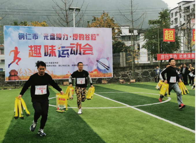 11月6日,由市委宣传部主办,市精神文明办、市总工会、中国移动铜仁分公司承办的铜仁市“光盘接力·爱的谷粒”趣味运动会在谢桥举行。市直各级文明单位、文明校园、文明家庭共37支代表队约200余人参加活动。