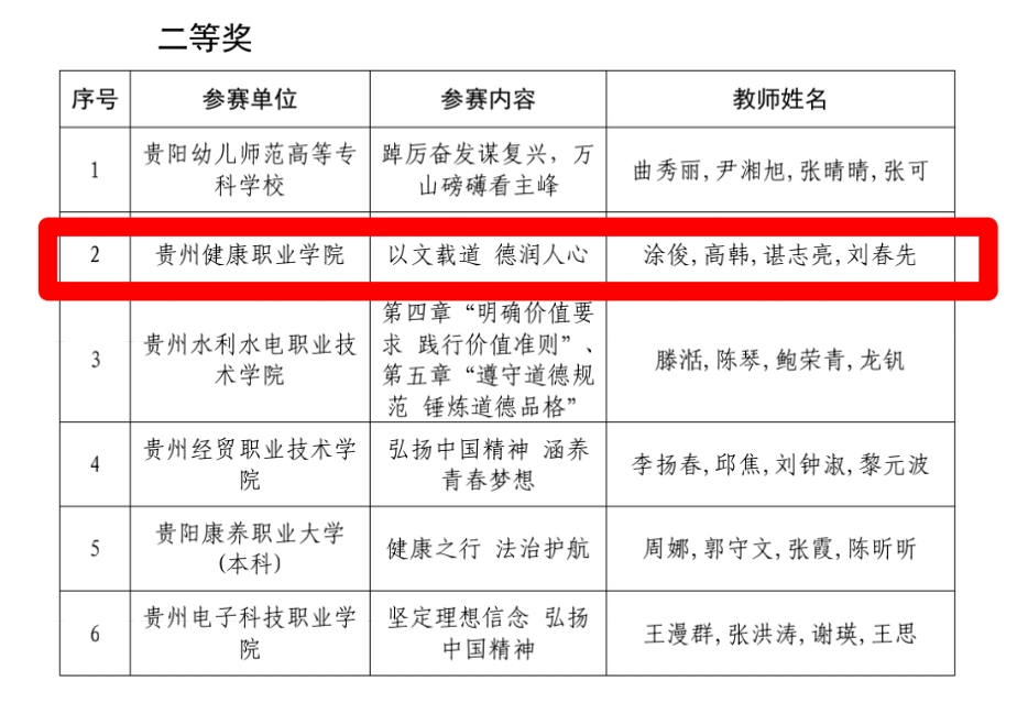 正在公示|| 我院思政课教师团队在贵州省2023年职业院校技能大赛教学能力比赛中获二等奖