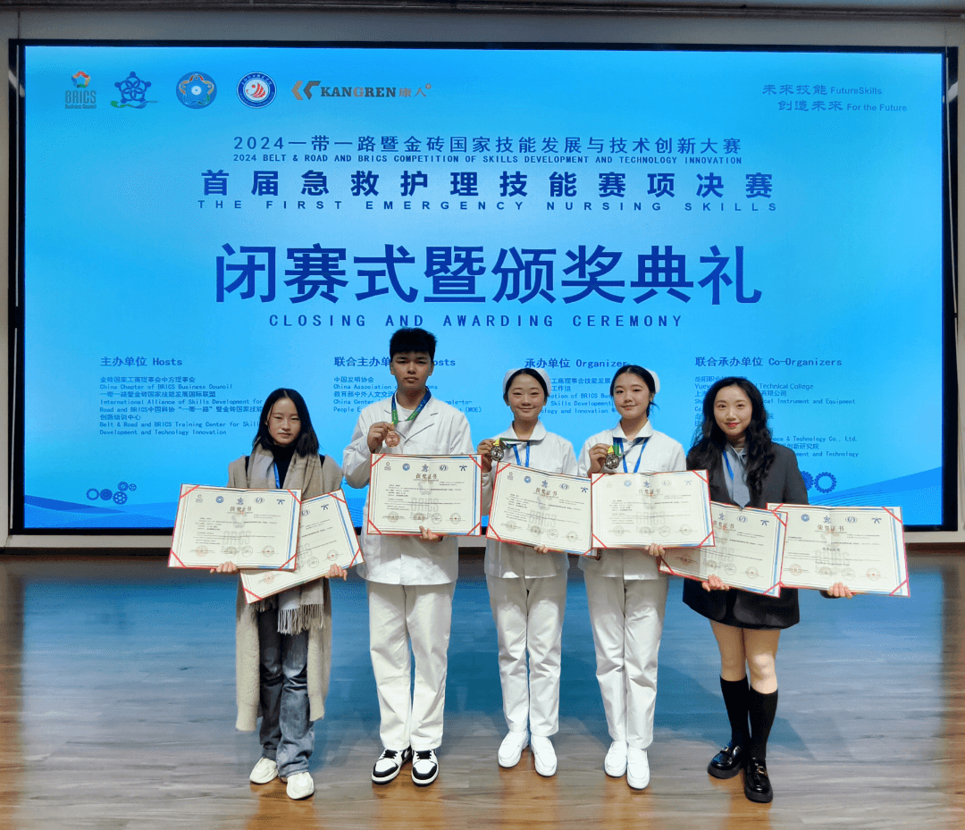 12月6日至9日,在岳阳举办的2024“一带一路”暨金砖国家技能发展与技术创新大赛首届急救护理技能赛项全国决赛中,护理系学生凭借出色表现荣获二等奖(银奖)与三等奖(铜奖),贝博官网荣获大赛优秀组织奖。