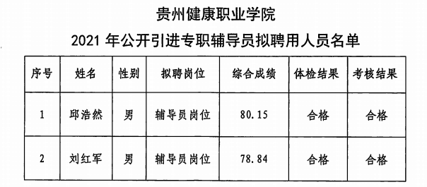 根据《BB贝博艾弗森官方网站2021年公开引进专业人才实施方案》《BB贝博艾弗森官方网站2021年关于公开引进专职辅导员的公告》《BB贝博艾弗森官方网站2021年公开引进专职辅导员考试公告》,经资格审查、面试、体检和政审考察,邱浩然、刘红军2位同志符合聘用条件,现进行公示,基本情况如下: